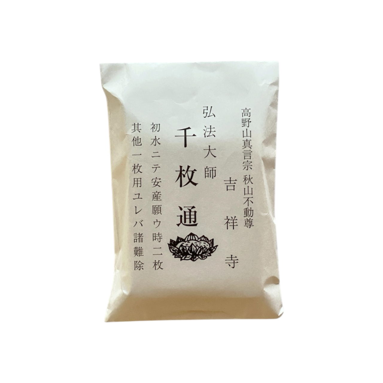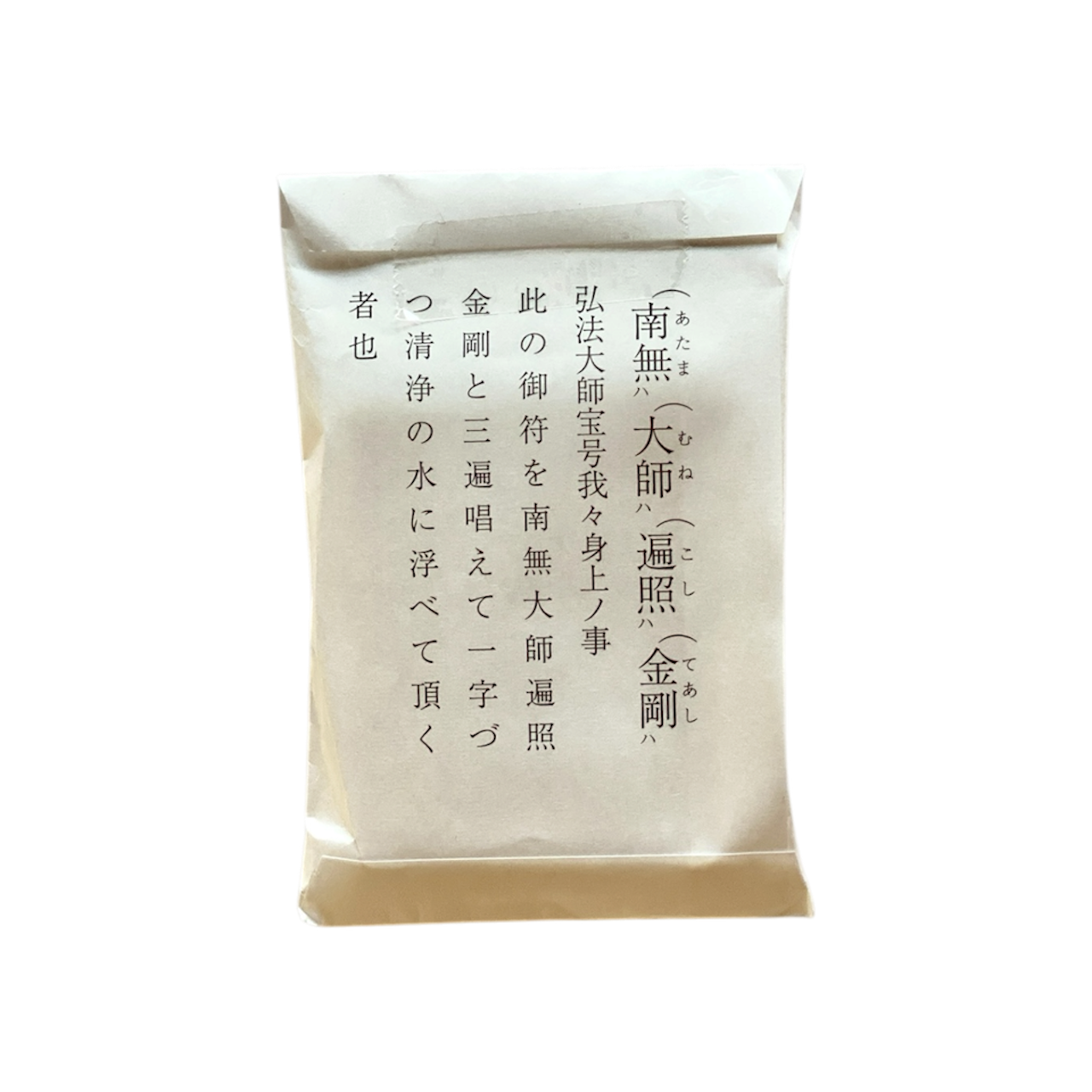 ご宝号を3遍お唱えし、極薄の小さな護符を1枚づつお水または白湯に浮かべ、願掛けをして飲むお守りです。